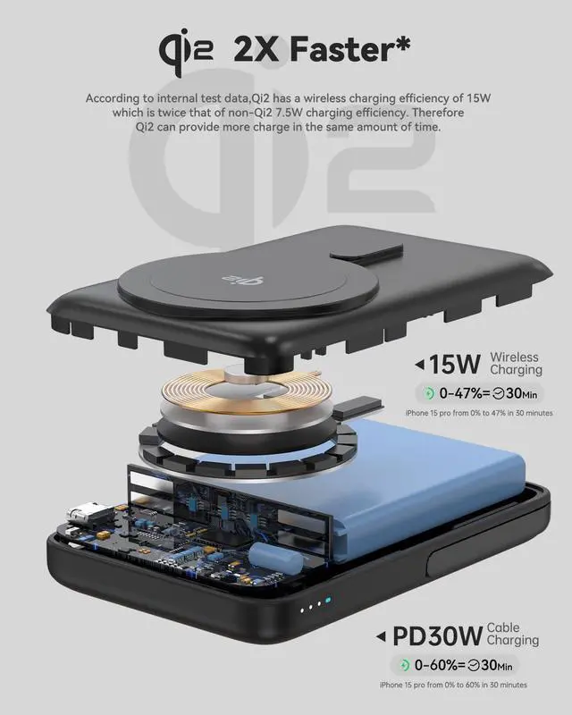 Qi2 Certified Charging Experience reliable 15W ultra-fast wireless charging with Qi2 certification, ensuring secure, rapid, and effective power enhancements whenever you need them.