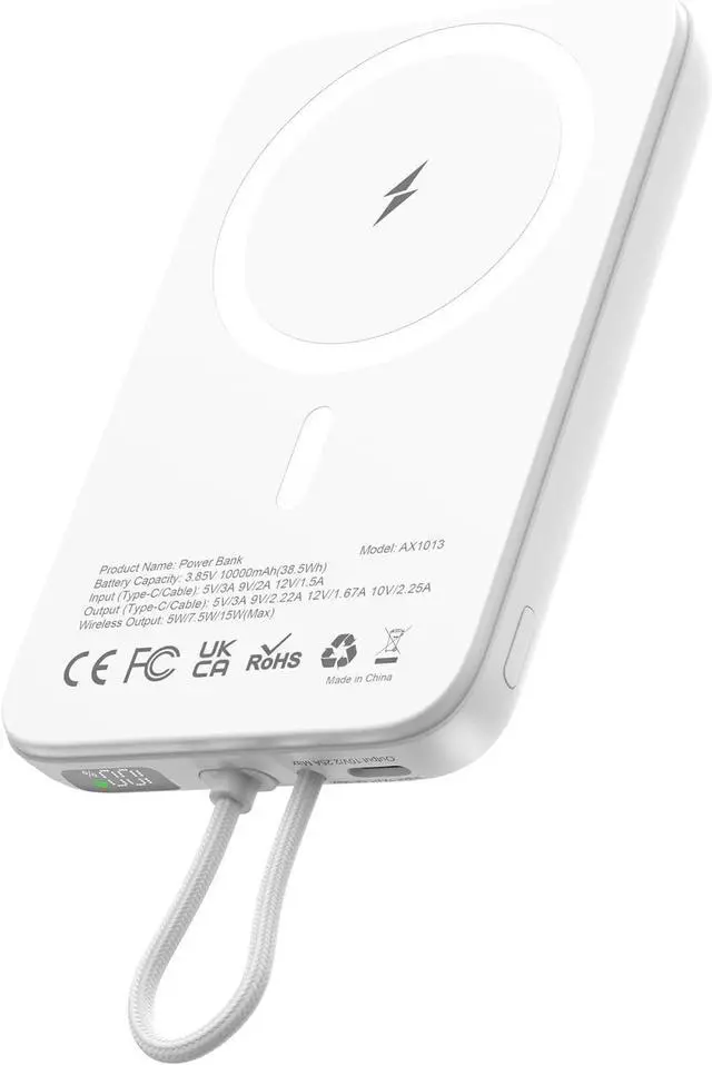 What You Get: 10000mAh Magnetic Power bank x 1, USB-C Charging Cable x 1, User Manual x