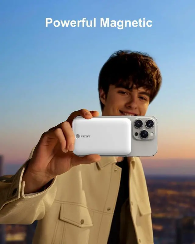 Strong Magnetic Wireless Charger & Built-in Type-C Cable: This Magnetic battery pack has built-in USB-C charging cable, perfectly compatible with iPhone or Type-C devices, no need to carry extra cables; This portable phone charger with the newest magnetic technology, can directly hold the back of your iPhone 16/15/14/13/12 Series, so you can single-handedly take selfies, make calls, and more. You can charge your phone anytime and anywhere, perfect for travel, vacation and camping.