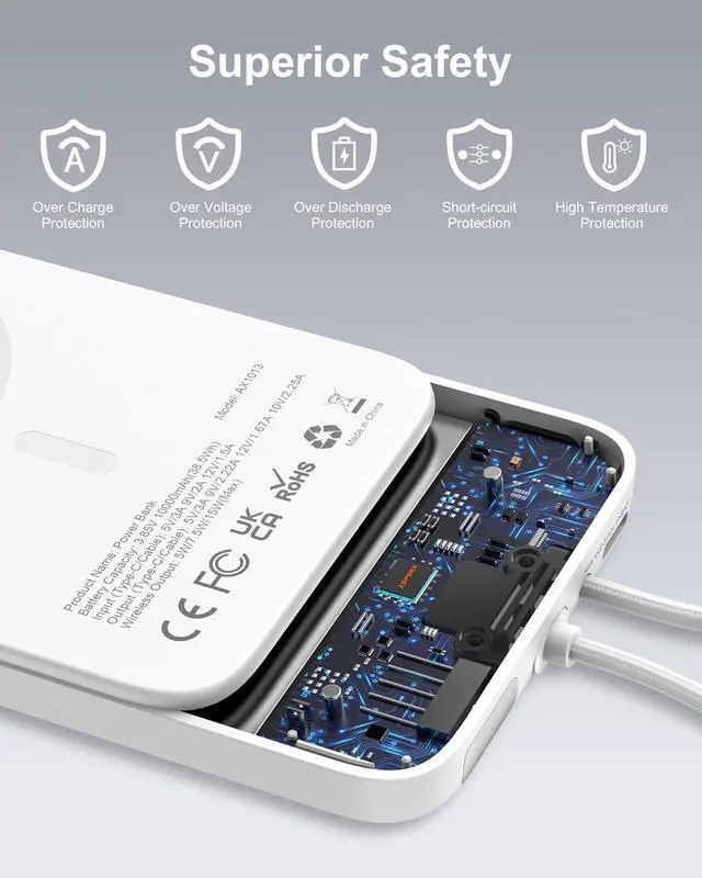 Superior Safety: This Portable power bank built-in smart chip and low-temperature ice cores. keep your devices from overcharging, over-current, short circuits and high-temperature protection to protect the safety of your portable charger.