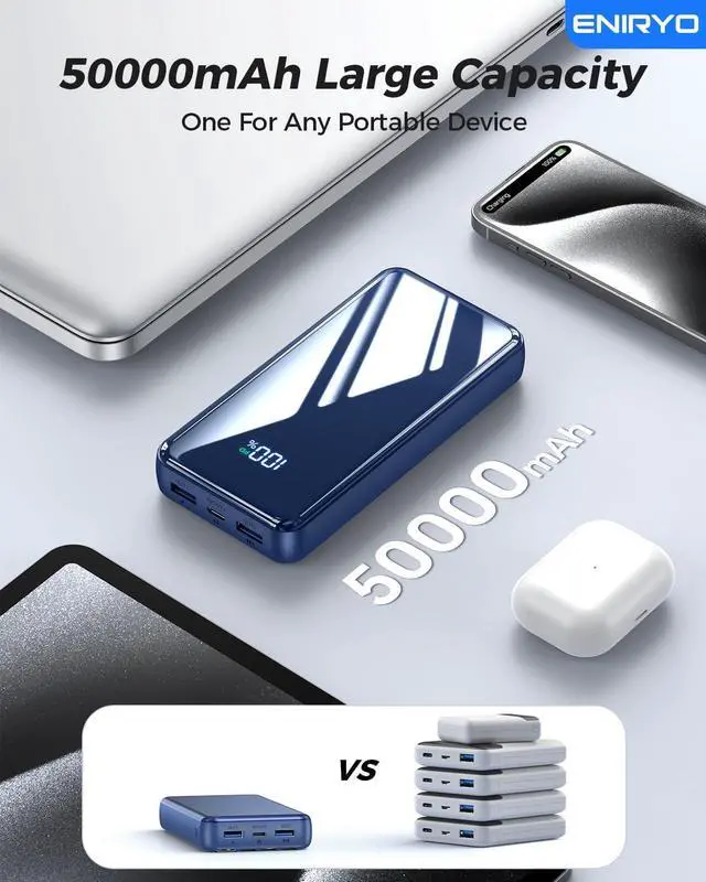 Once: Power Up Your Squad! 6 outputs and 2 input ports. allowing for efficient charging up to 6 devices at once Ideal for travel camping or daily usekeep your phone tablet earbuds and more juiced up simultaneously! 50000mAh