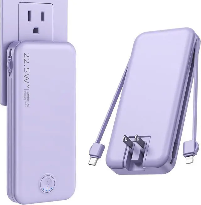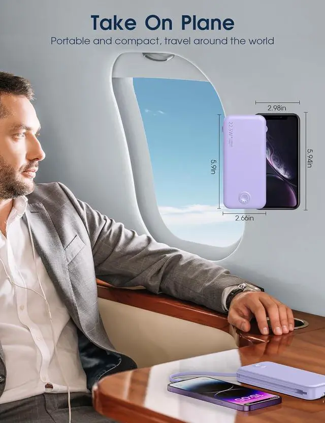 Portable Power Bank Comprehensive: This charging bank built-in USB C and for iPhone cables top up your iPhone Android cell phones easily. The AC Wall plug allows you to recharge the portable charger directly from 100-240V wall socket no need extra adapter cords wherever you go.