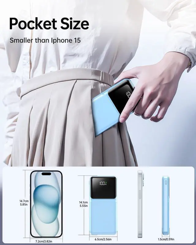 Cables: USB C 20000mAh power bank has 4 built in cables (iOS Type C USB Micro) compatible with almost all types smart devices such as for iPhone 16/15/15 Plus/15 Pro/15 Pro Max S23 S22 S21 S20 Google Pixel Android iPad Tablet and more. (Airline-approved)USB C and iOS Fast