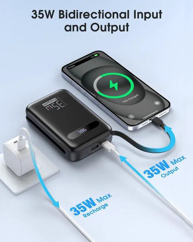 Power Bank: Stop waiting around for a chargeOur advanced 35W PD 3.0 & QC 4.0 technology delivers incredible charging speeds: revive your iPhone 16 to 60% or your Galaxy S24 to 58% in just 30 minutesnoticeably faster than standard 15W-30W power banks. Perfect for busy days and travel. Massive 20 000mAh