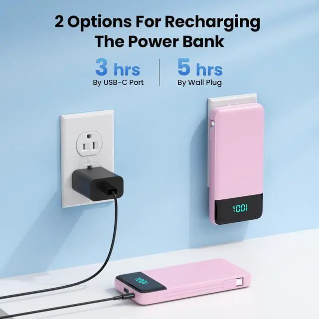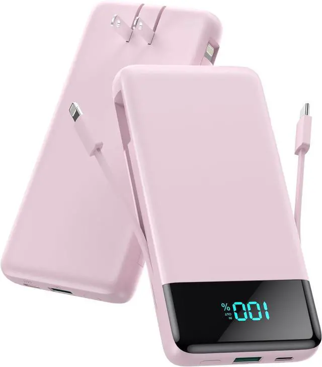 Wide CompatibilityPortable battery pack is widely compatible with All iPhone 15/15 Plus/15 Pro/15 Pro Max/14/14 Plus/14 Pro/14 Pro Max iPhone 13/13 Pro/13 Pro Max/12/12 Pro/12 Pro Max iPhone 11/XR/XS Max/8/8 Plus/7/7 Plus/6/6s/6 Plus S22/S23 Series Google Pixel LG Moto tablets Android devices smart devices and so on. Portable Charger with Built-in Cables & AC Wall PlugFOCHEW Portable Charger with built-in USB-C cable other cable for iPhone and AC Wall Plug for recharging the power bank itself also is equipped with USB-C input/output and USB-A output. You can say goodbye to carrying adapters and cables when travel. Portable Charger for Multiple DevicesThis Portable Charger features 4 outputs including 2 charging cables outputs USB-C and USB-A outputs.