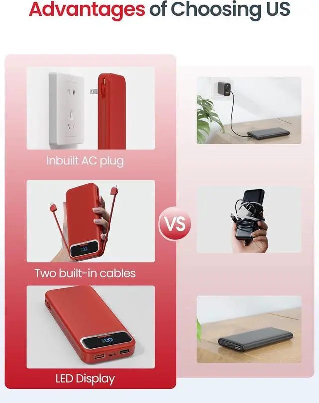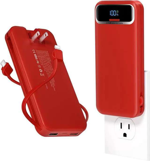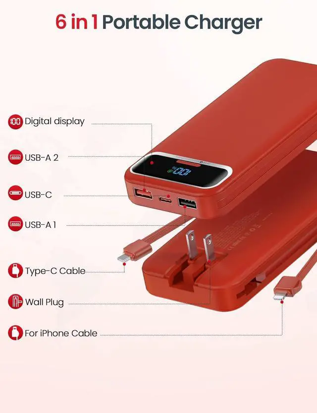 [AC Wall Plug Portable Charger]The AC Wall plug built-in allows you to recharge directly from the wall outlet. No need to carry any cable and adapter for your devices anymore it can charge for multiple devices and your best travel accessories for your smart devices. [Super Fast Charging Power Bank]Designed for multiple devices this fast charging power bank with USB C port USB C cable and one of USB A. This USB A is specially designed for fast charging Android and other smart devices. The elegant LED digital screen displays the battery power even accurately to 1%.
