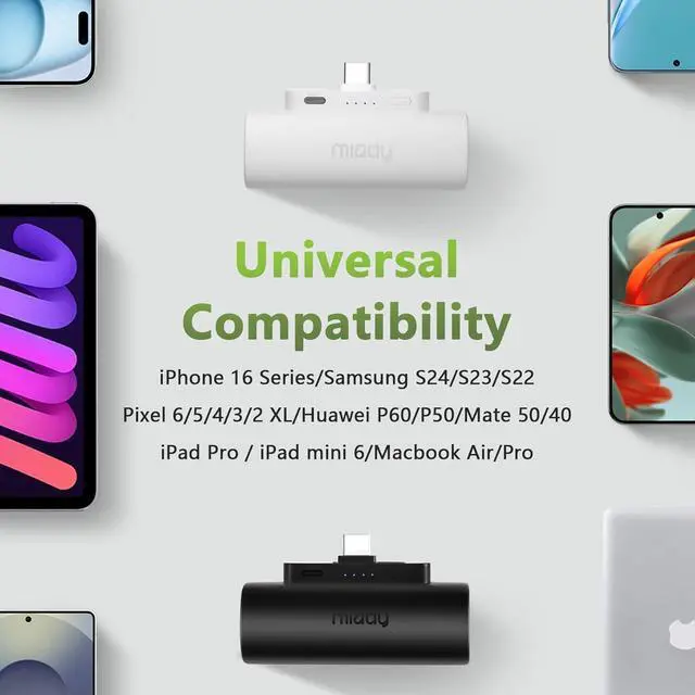 12W Fast Charging: Miady portable phone charger supports 12W fast charging that can quickly power your phone.