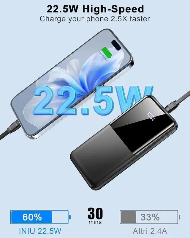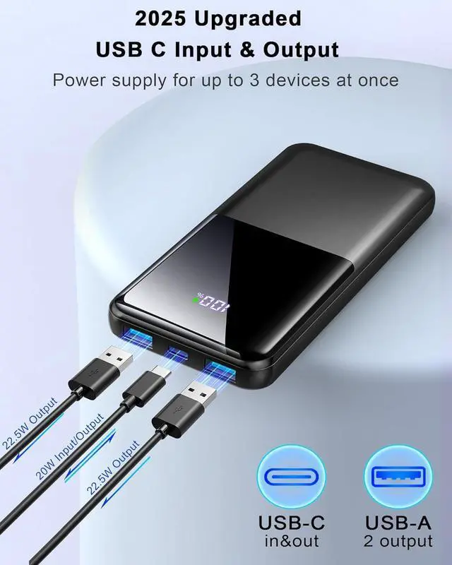 Fast Portable Charger: The core of this 25W fast charging power bank is its powerful fast charging technology. With 25W PD 3.0 output and QC 4.0 output it allows you to live a fast-paced life without worrying about insufficient power and affecting your work and life efficiency. This 25W powerbank is equipped with USB-C and USB -A fast charging ports. Whether it is the latest smartphones or other compatible electronic devices it can be quickly charged in a short time. 3 outputs and 2