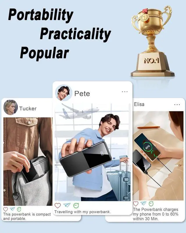 Superior Compatibility: This power bank is made from premium durable materials that ensure safety and longevity. It is designed to be safe with built-in protections against overheating overcharging and short-circuiting giving you peace of mind while charging your devices. Supports PD 3.0 /QC 4.0 /QC 3.0 /AFC/FCP protocols that are tailored to various electronic devices. Just to let customers get a safe product. 10000 mAh
