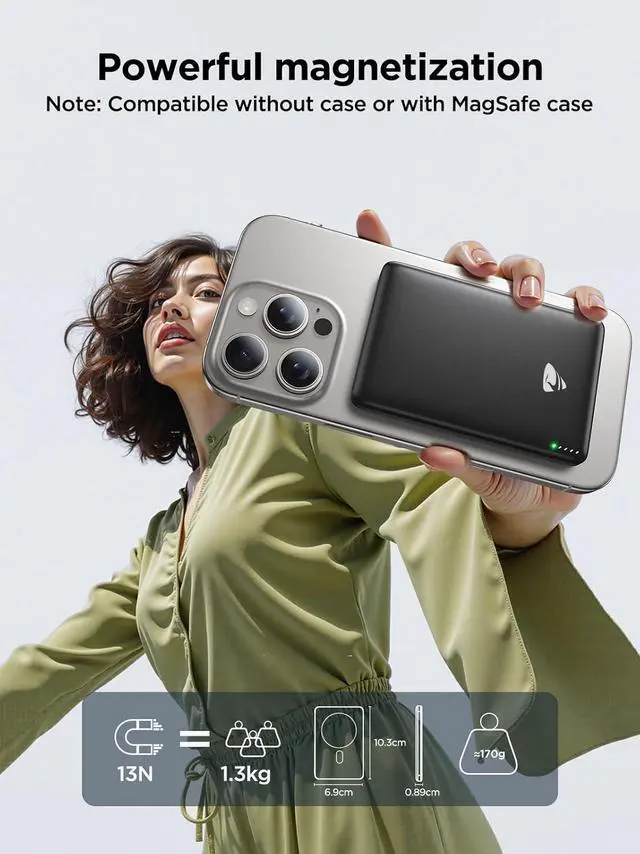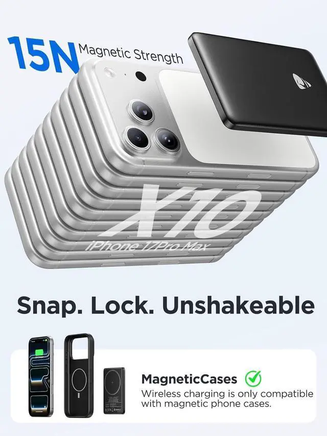 Perfect Compatibility: Aioneus Magnetic Portable Charger offers a perfect fit for all iPhone 17/16/15/14/13/12 series. With 15N strong magnetic force it stays securely attached snap-on charging aligns automatically does not block the camera and allows for uninterrupted usageenabling you to charge while taking photos gaming or on callsDual