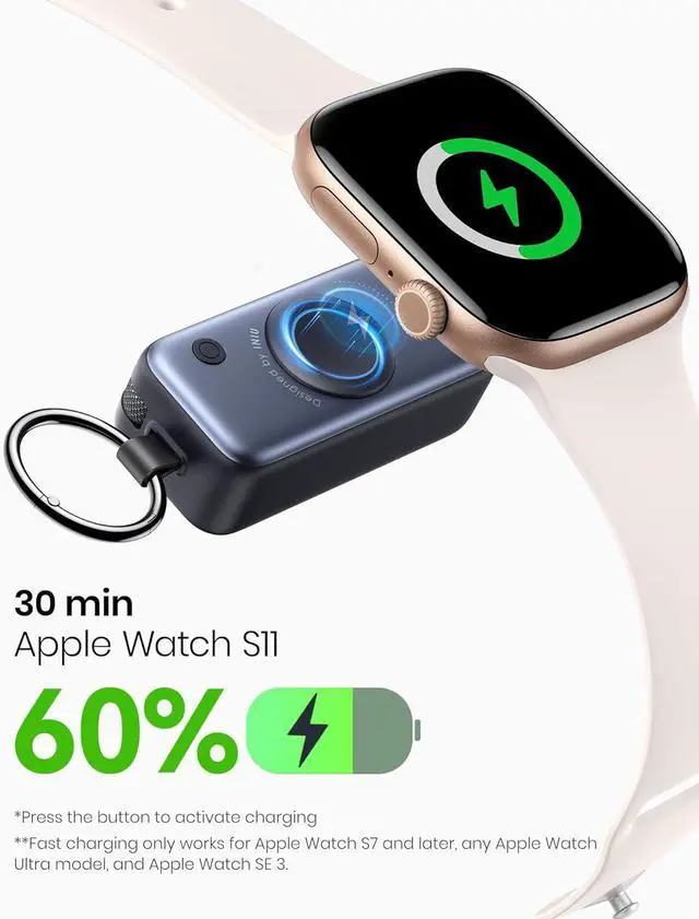 Charging for Watch: Delivering up to 5W fast wireless charging INIU portable charger for Watch powers your Watch S11 to 60% in just 30 minutesthats 4X faster than standard 2.5W chargers. Spend less time waiting and more time staying active.