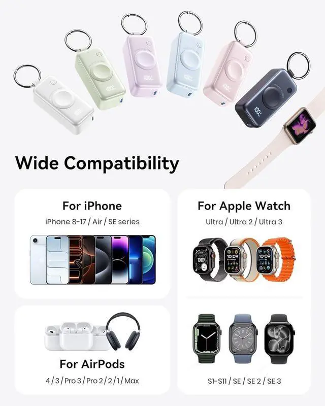 Compact Backup Power: This TSA-compliant 5000mAh power bank delivers up to 6 full charges for your Watch S10 or can charge your iPhone 16 up to 91% providing reliable power when you need it most.