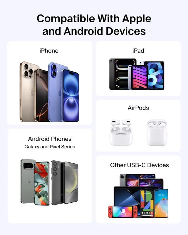 UNIVERSAL USB-C COMPATIBILITY: Charge up to 2 devices at once up to 15W with the convenience of 2x USB-C ports or charge one device up to 20W. Whether it's your smartphone tablet or earbuds you can stay powered up and connected no matter where you are.