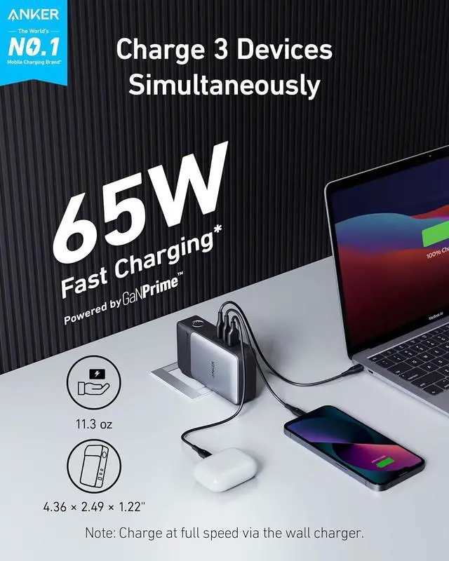 Effortless Power Management: Experience rapid charging with 's GaNPrime technology and PowerIQ 3.0 ensuring efficiency and device safety with ActiveShield 2.0 temperature control.
