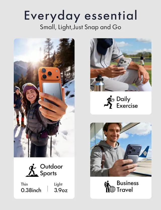 Power Bank: At just 0.38 inches thin this ultra-slim power bank offers 5 000mAh of reliable wireless charging. Featuring Qi2-certified technology it significantly boosts charging efficiency while effectively addressing overheating and slow charging issues.