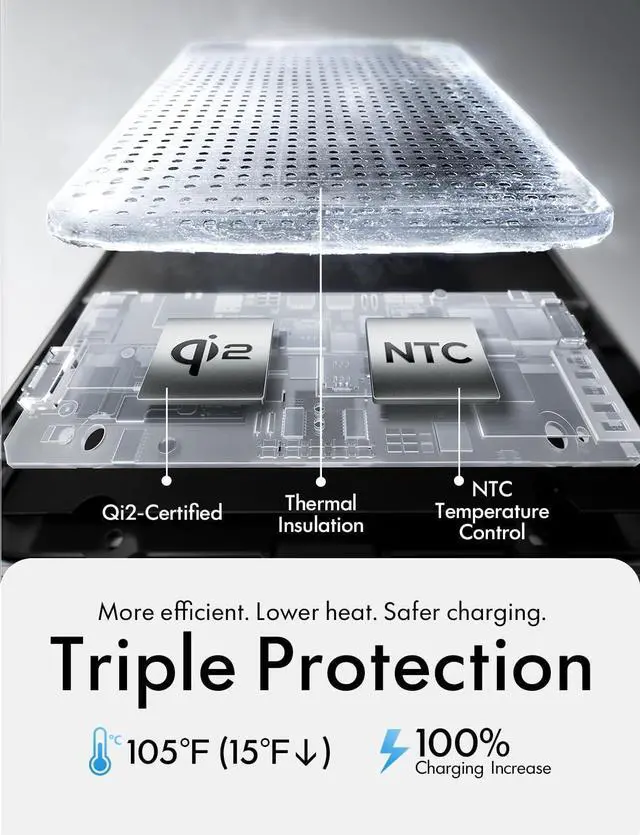 15W Qi2 Fast Charging: Charge your iphone 17 up to 50% in just 1 hour with advanced lithium-polymer technology and NTC temperature control twice as fast as other portable chargers.