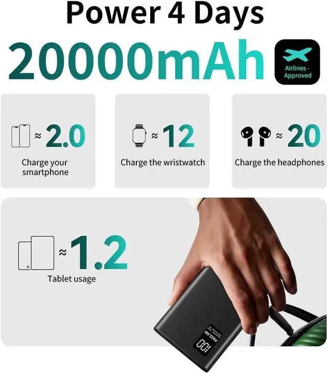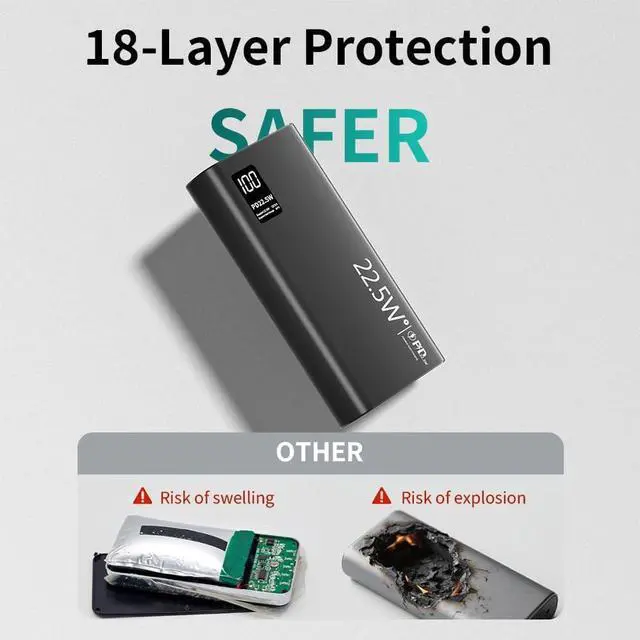 Power Delivery: With 22.5W of fast-charging power this portable charger significantly reduces charging times. Its advanced voltage regulation ensures the optimal charging speed for each device offering a quick boost of power in just minutes. The intelligent system also helps preserve battery health and reduces wear from prolonged charging sessions. Authentic and Superior 5V2A 20000mAh