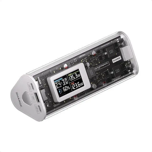 Note: It's not designed for immersing in water or underwater adventuresSmart DisplayTransparent design with a display showing charging power time and battery level. Monitor status anytime anywhereUniversal CompatibilitySupports PD 3.1 up to 140W plus PD 3.0 QC 5V/ 2.4A and SCP ensuring fast charging for 1000+ devicesWhat You GetShargeek 170 power bank 240W C-C cable travel pouch user guide