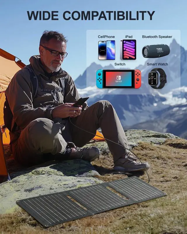 AND WIDE COMPATIBILITY: Crafted with a premium ETFE coating our 21W solar panel charger is built to last. With an IP67 rating its waterproof dustproof and ready for any weather. This solar phone charger delivers reliable power to devices like iPhones power banks tablets and more making it an essential emergency power source for all your adventuresWHAT