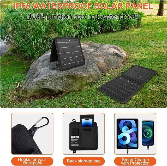 The built-in smart IC chip in this solar panel ensures smart charging for all your devices from cell phones and laptops to cameras speakers drones and more. It provides the optimal charging current for each device eliminating the risk of overcharging or damage. Keep all your devices powered up and charged during your outdoor adventures. DUAL OUTPUTS - USB A /