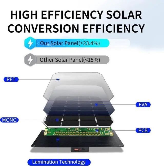 Superior Solar Efficiency24% Conversion Rate Harness sunlight smarter with our 24% high-efficiency monocrystalline solar cells in this portable solar charger outperforming standard paneles solares in low-light conditions. Engineered with Smart SunTrack Technology it auto-adjusts angles to maximize energy capture ensuring rapid charging for phones (0-100% in 2.5 hours) power stations and laptopseven on cloudy days. Ultra-Light &Space-Saving PortabilityWeighing 1.54 lbs (30% lighter than competitors) and folding 11.5 x 8 to iPad-sized ( 10.2 x 6.3 ) this 30W foldable solar panel slides effortlessly into backpacks. Reinforced 4 piece nylon hinges and a built-in kickstand make it a camping solar panel for hands-free setup on tents RV roofs or uneven terrainno extra tools needed.