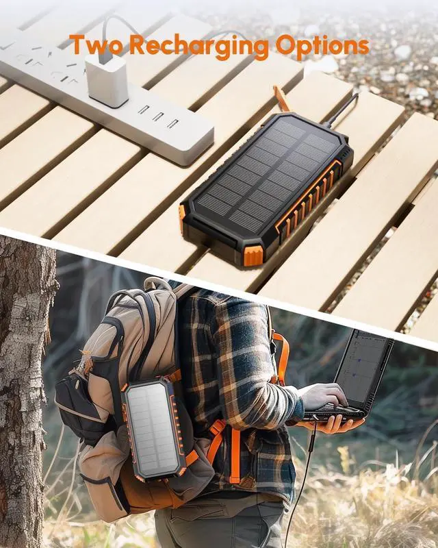 Outdoor Essential: Made of highly durable material this solar battery pack is designed to withstand drops dust and moisture making it the go-to rugged power source for outdoor adventures.