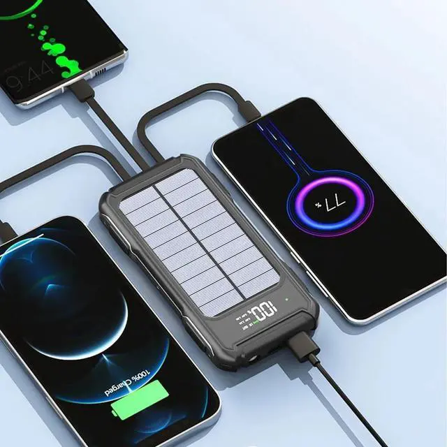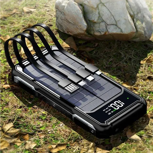 - 30000mAh Larger Capacity & Safer BatteryThe solar charger uses high-density premium li-polymer battery, which makes the charger more compact and safer than others. Long lifespan, large capacity offers you multiple charges, freeing you worries of power outage anytime anywhere, Definitely a reliable power sources for you.