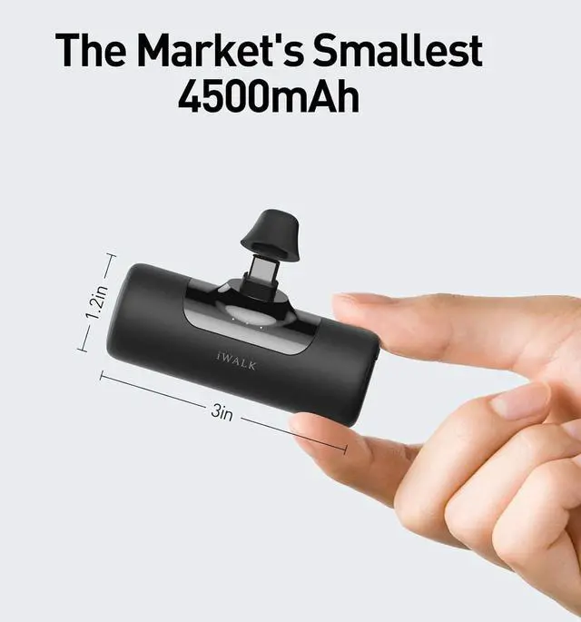 Capacity: Tiny but mighty, all-in-one design, the iWALK portable charger provides convenient charging on the go, powering an iPhone 15 Pro up to 1.1 times and an iPhone 15 up to 1 full charge.