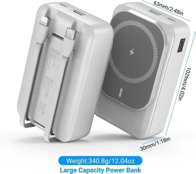 Universal compatible with All popular devicesThe Portable power bank is compatible with iPhone 16/15/14/13/12 Series. For wireless charging, please make sure your phone has a magnetic feature or wear a magnetic case to avoid not being able to best use this product. Portable phone charger builts in multi ports, cables, it is widely compatible with all popular cellphones or tablets. Such as for iPhone, iPad, for Samsung, for other USB C port phones, tablets, and also for Micro devices