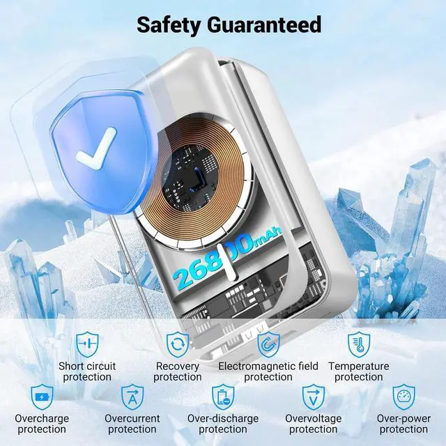 Reliable Security & Smart Indicator LightThe magnetic phone charger is equipped with built in temperature control, overcharge protection, over-current and over-voltage protection, and foreign object detection, providing you a safe wireless charging. Intelligent power display allows you to keep an eye on the power usage of your mobile power, so you don' t have usage anxiety.