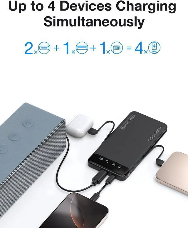 • [4 Output& 2 Input with Built-in cable] Bulit-in Apple &Type-C(input&output), cables USB-A and USB-C(input&output) port allowing you to charge up to 4 devices simultaneously with an output of 5V/2.4A (12W) per port. compatible with iPhone 15/14/13/12/11/XR/8/7, iPad, Samsung Galaxy S22, tablet, Oculus Quest 2 and other smart devicesno need to take any charging cables.