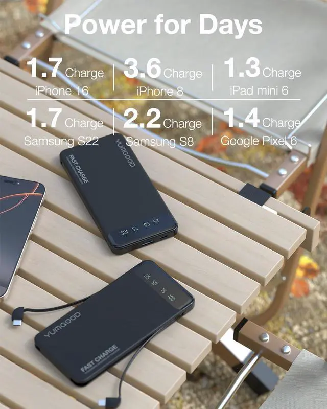• [Essential travel companion] Portable power bank with a hanging rope charging cable is a must-have accessory for convenient charging on the go.Equipped with multiple cables compatible with different phone models, this charger makes it convenient to share power with family and friends during your journey.