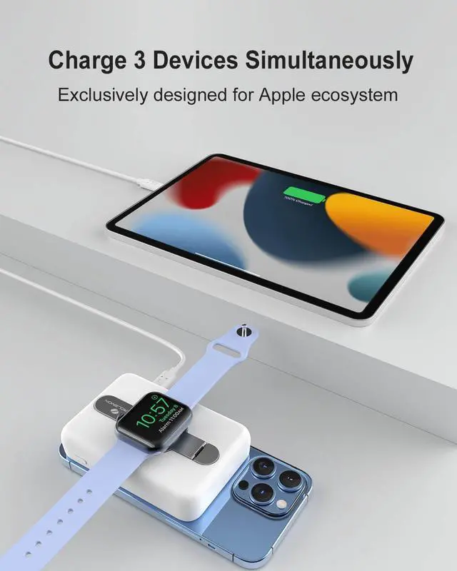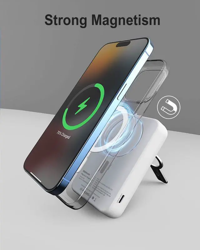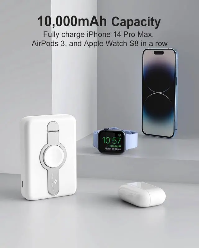 Powerful Battery and Strong Magnetism - The UL-Certified 10, 000mAh battery will effectively provide one full charge to an iPhone 14 Pro Max, an AirPods 3, and an Apple Watch S8 in a row; With enhanced magnets, the magnetic portable charger will stick to the iPhone 15 Pro Max tightly and steadily, no worry about charging interruption