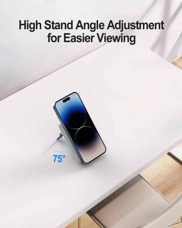 Foldable and Flexible Kickstand - The angle from 0 to 75 degrees for you to adjust; 45 degrees is comfortable for most people for a sitting view, but if you are tall or your desk is too high or too low, adjust the angle freely to get the most comfortable view