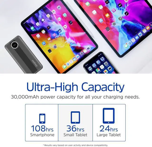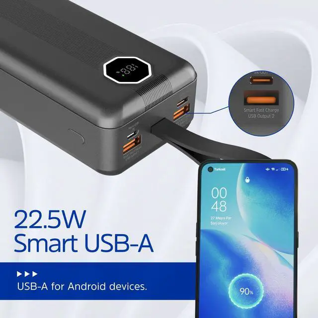 - KNOW YOUR POWER AT A GLANCE - The clear LCD screen displays the exact percentage of remaining battery life, so you're never left guessing. Plan your charges with precision and confidence. When fast charging or fast recharging is activated, an icon appears on the LCD display to notify you. Always keep an eye on your charging progress.