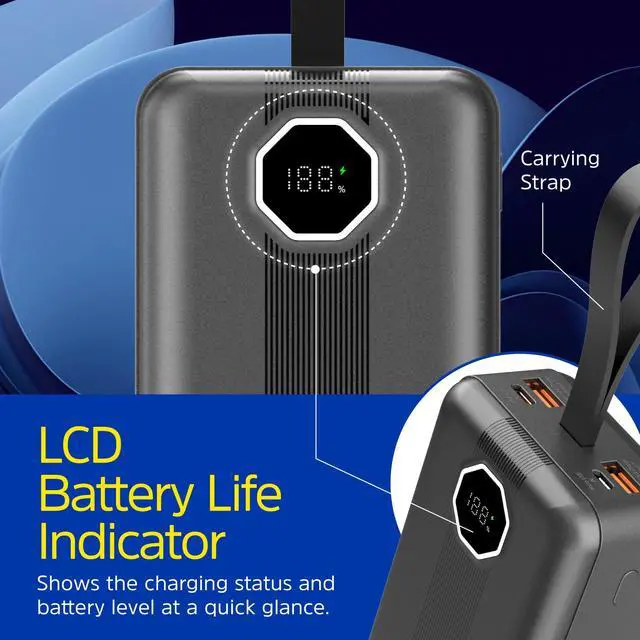 - TAKE YOUR POWER BANK ANYWHERE WITH EASE - The durable, built-in carrying strap provides a secure and comfortable way to hold the device, preventing accidental drops and making it a convenient travel accessory for your daily commute, hikes, or busy errands.