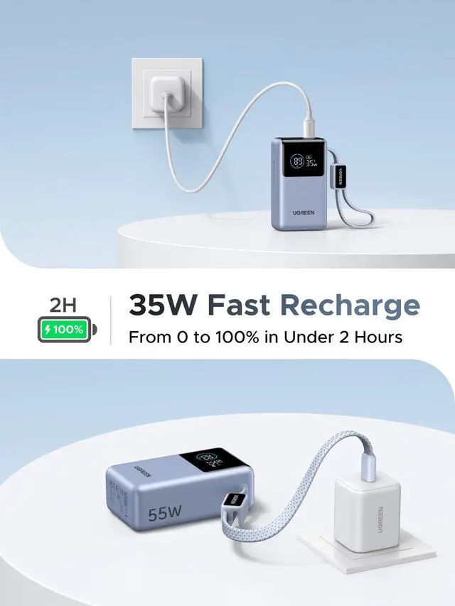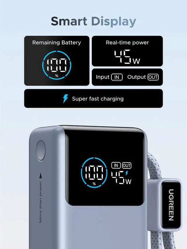 Ultra-Compact Design 60% Smaller, Effortlessly Pocketable The smallest power bank UGREEN has ever builtover 60% smaller than the iPhone 17 Pro Max. Slides into any pocket or travel pouch without bulk, perfect for commuting or business travel.