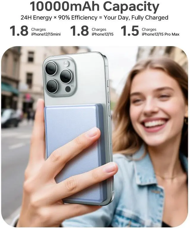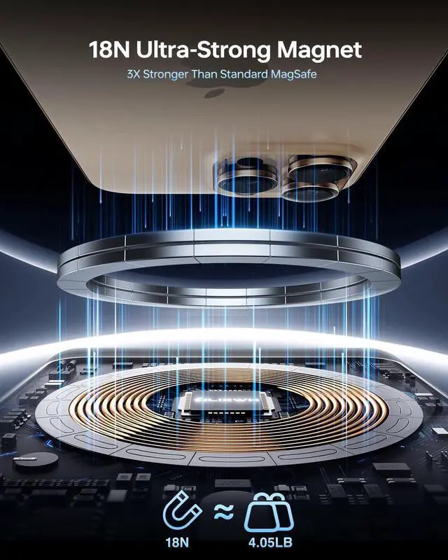 [ Military-Grade 18N Magnetic Hold ] Forget messy cables! With an ultra-strong 18N ultra-strong magnetic force (4x industry standard), this slim magsafe power bank securely snaps onto your phone and stays firmly in placeauto-aligns in 0.3s. *Lab tested with iPhone 16 Pro Max at 25mph treadmill speeds. Zero charging interruptions.