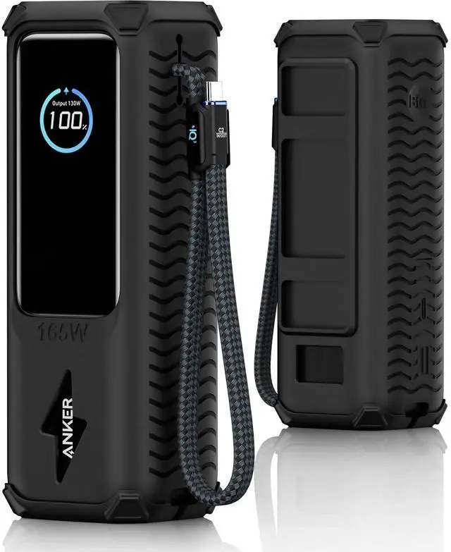Silicone Case for Anker Laptop Power Bank (25,000mAh/165W) - Shockproof Drop-Resistant, Built-in Cable Storage | Non-Slip Grip, Hidden Dust Plug Protective Cover for Anker Power Bank 165w