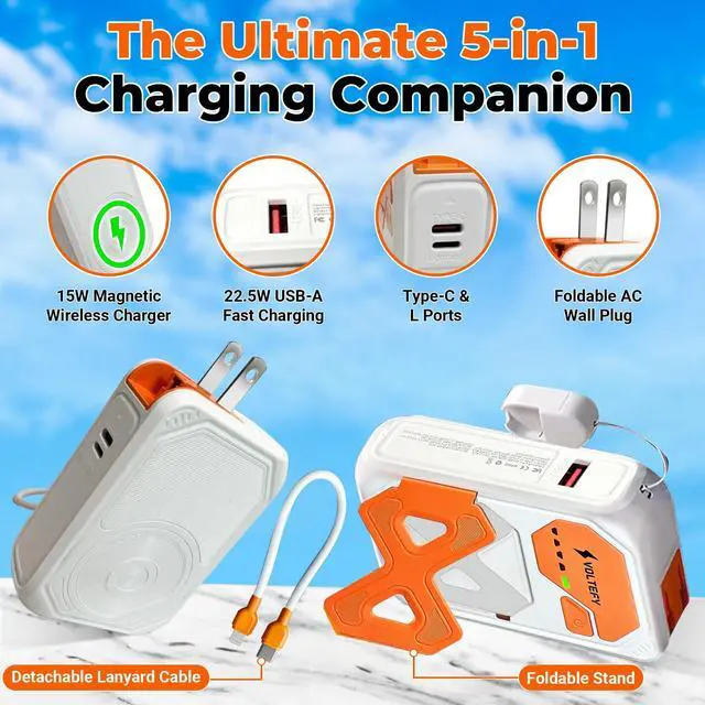 Voltefy 5 in 1 Power Bank with Wireless Charging