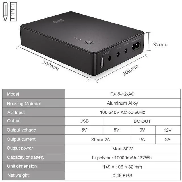 - Warning: please do check the operating voltage and current of the devices before connecting them to the mini UPS.