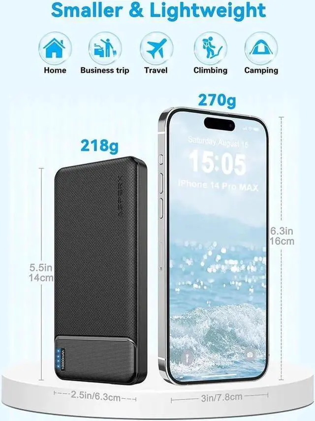 More importantly these phone charger battery pack portable are also airline-approved. [Super Slim]At only 0.5 inches thick and weighing only 223 g this portable battery pack fits in any backpack purse or work bag. Lightweight and compact making it be a essential for business travel hiking and camping. [Package Contents] The package includes two usb c power banks 2 USB-C charging cables and one user manual. We provide pleasant customer service 24 hours a day seven days a week. Please do not hesitate to contact usNOTICE: 1. Please use an adapter or charging cable with a power lower than 5V*2A to charge the power bank and NOT to use the computer's USB port to charge the battery bank. 2. Do NOT Charge it and Use it at the same time. 3. NOT to use the mobile phone to take pictures watch videos and play games while using battery packs charge it.