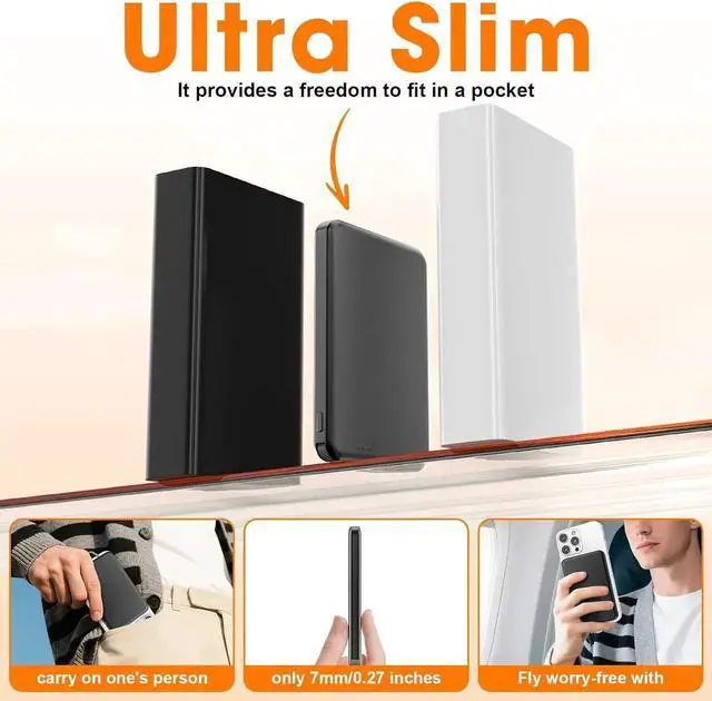 & Innovative: Strong magnets ensure a secure hold. Premium lithium-polymer battery offers lasting power. With overcharge protection NTC temperature control and a fingerprint-resistant finish. Slim enough to fit in your pocket or walletCompatibility