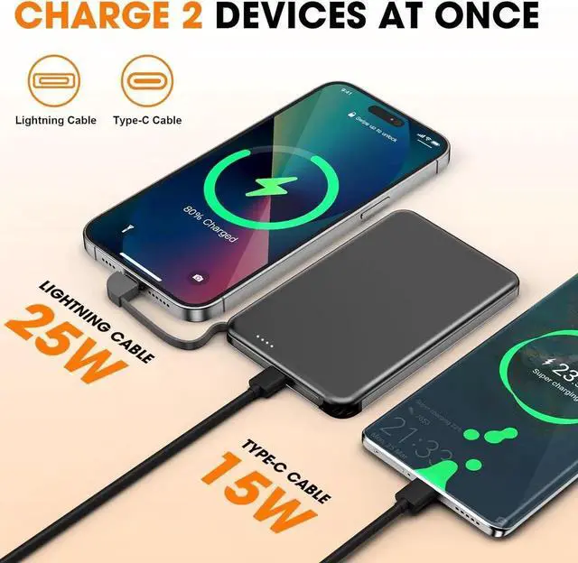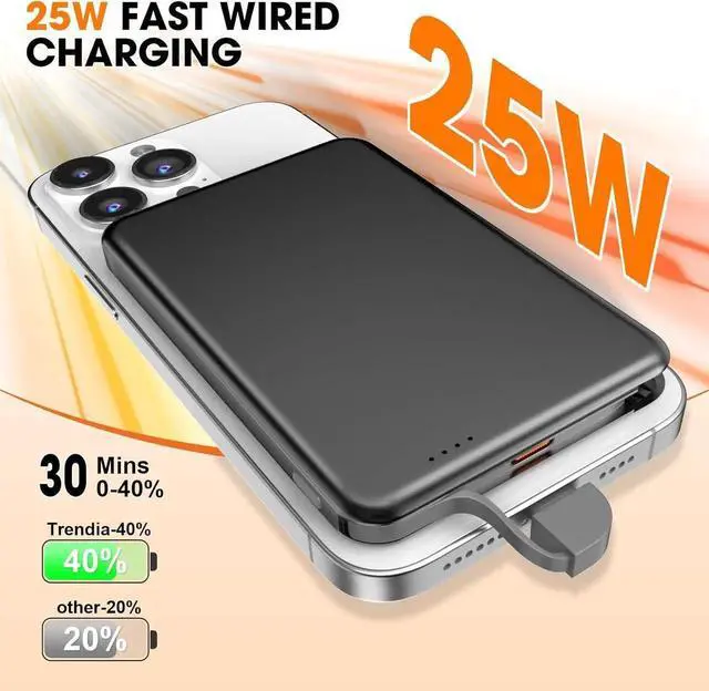 Android phonesWhats in the box: youll receive one 5000mAh ultra-thin power bank with built-in cables (25W Lightning and 15W Type-C adapter) one USB-C cable one user manual and 24-hour after-sales support from NZKEEYZI