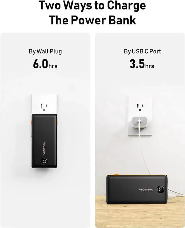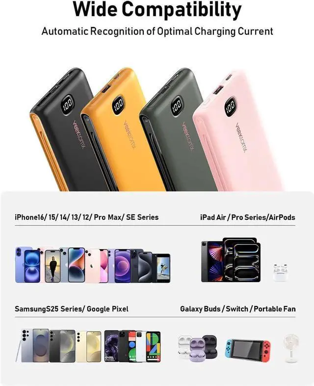 Universal Compatibility: Equip your tech arsenal with the VEEKTOMX 10 000mAh portable iPhone charger designed for compatibility across the board. Whether you're an iPhone 15 or S23 user this charger is your universal solution delivering nearly two full charges to keep your devices buzzing with life.