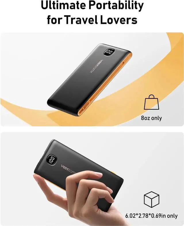 Pocket-Sized Power: Designed for the modern traveler this battery bank is a mere 6.02 × 2.78 × 0.69 inches and weighs a mere 8 ozcomparable to an iPhone 15. It's the ultimate companion for globetrotters and essential for on-the-go charging. Charge Multiple Devices at