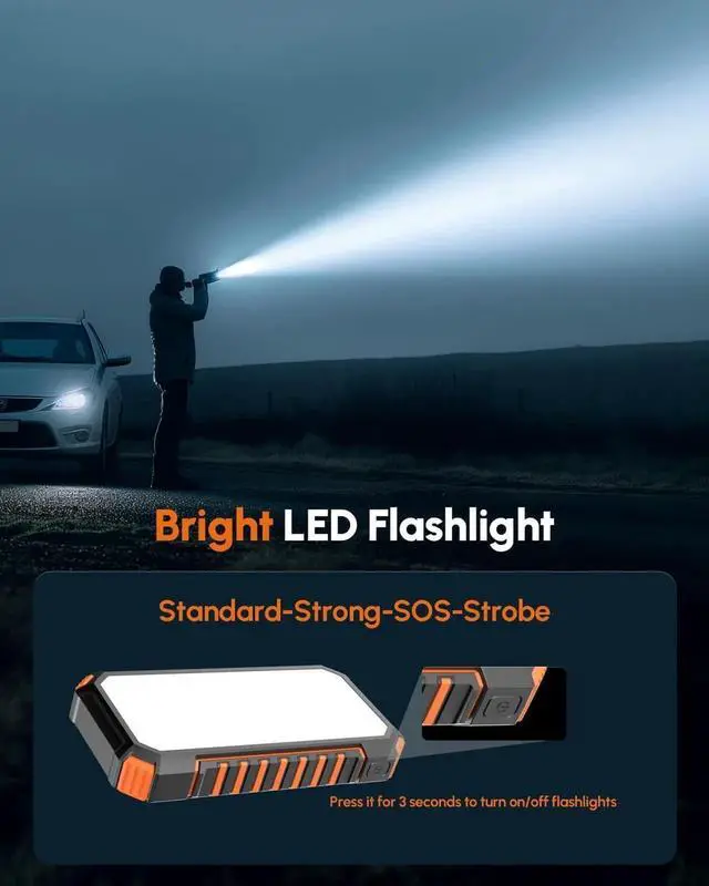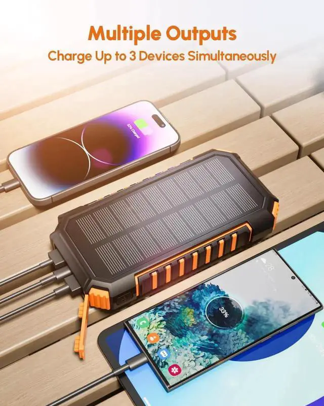 Fast Charging: This solar power bank can charge three devices simultaneously with convenient sharing while on the go. Fast charge an iPhone 14 pro to 50% within 30 minutes.