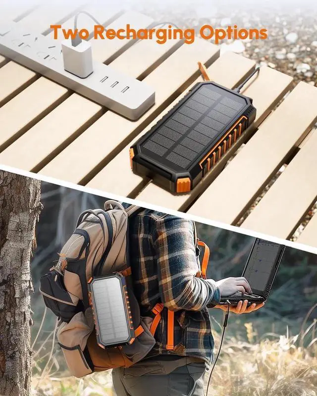 Outdoor Essential: Made of highly durable material this solar battery pack is designed to withstand drops dust and moisture making it the go-to rugged power source for outdoor adventures