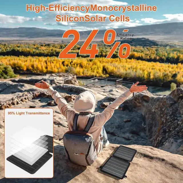 C: With USB-A and USB-C (5V/2A ) dual outputs this usb solar charger supports charing 2 devices at the same time. This solar phone charger is compatible with most cell phones smartwatches and other small electronic devices. ETFE INTEGRATED LAMINATION & MONOCRYSTALLINE SOLAR CELL: This solar powered charger has combined ETFE film with monocrystalline solar cell through advanced integrated lamination technology achieving a light transmittance of 95% and a conversion rate of 24%IP65