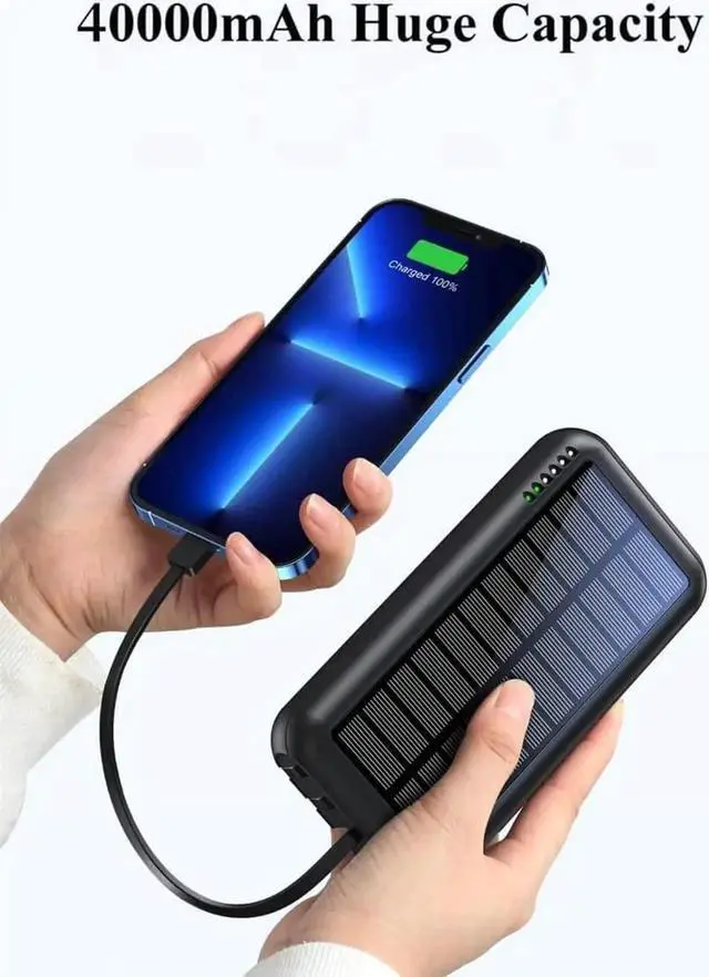 And you can share it with friends to charge together. Power bank has a built-in smart IC chip which can accurately identify the vast majority of mobile devices on the market and match the corresponding output power. The IC chip will also provide charging protection for the Power bank intelligently monitor the voltage and current and actively avoid a series of potential dangers such as overcharge overdischarge short circuit and high temperature. It can escort your device during use. Solar power bank has a large battery capacity that can last up to several days of extra battery power for your mobile device.